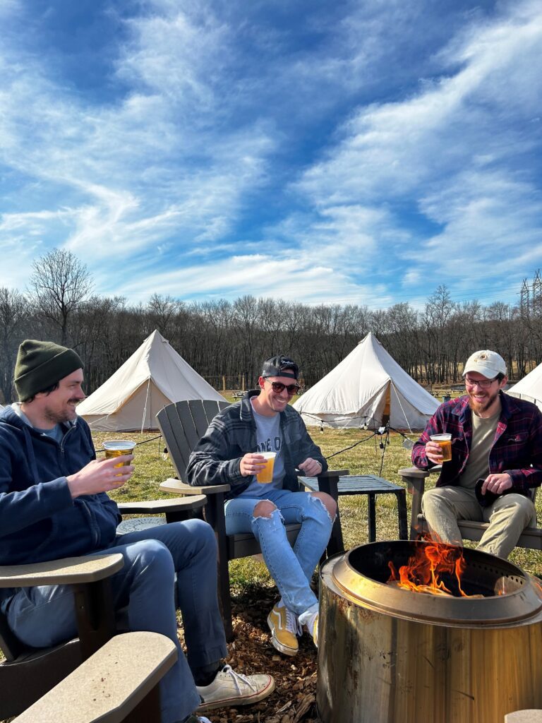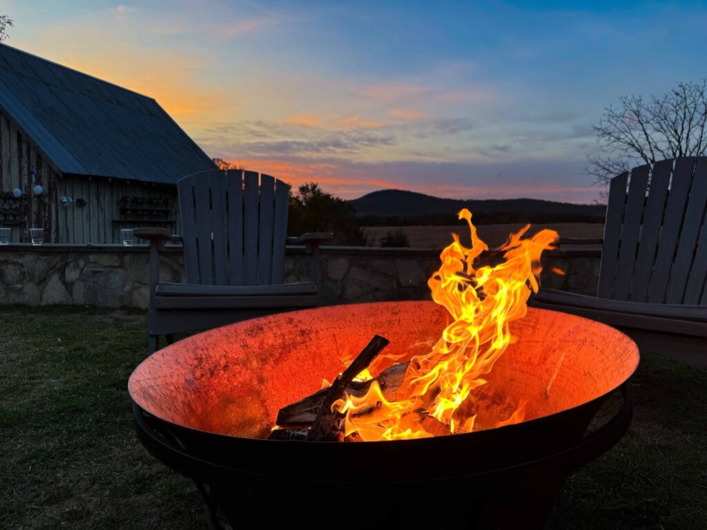Silo Falls in Brookeville presents a unique campfire experience where guests can unwind under the stars by a warm fire pit. Additionally, their outdoor patio provides a beautiful photo opportunity and is equipped with heaters and a fireplace for your comfort.