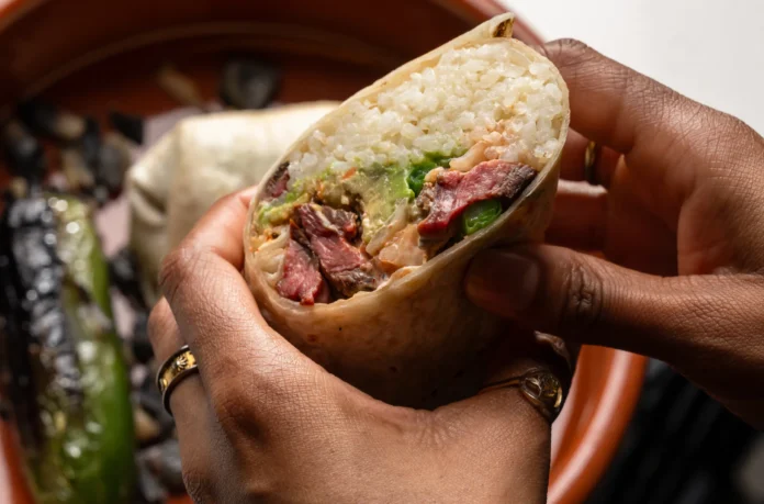 A steak and avocado-filled burrito at Cranes.