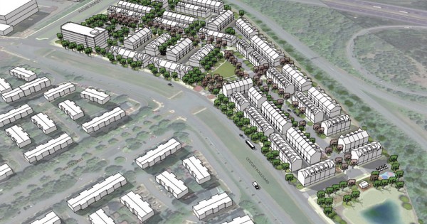Dream Finders Homes has submitted plans to Montgomery County for a substantial project featuring 407 residential units. This includes 93 townhouses, 268 stacked two-over-two units and biplexes, and 46 multifamily homes, all part of the Poplar Grove development located along I-270 (map).
