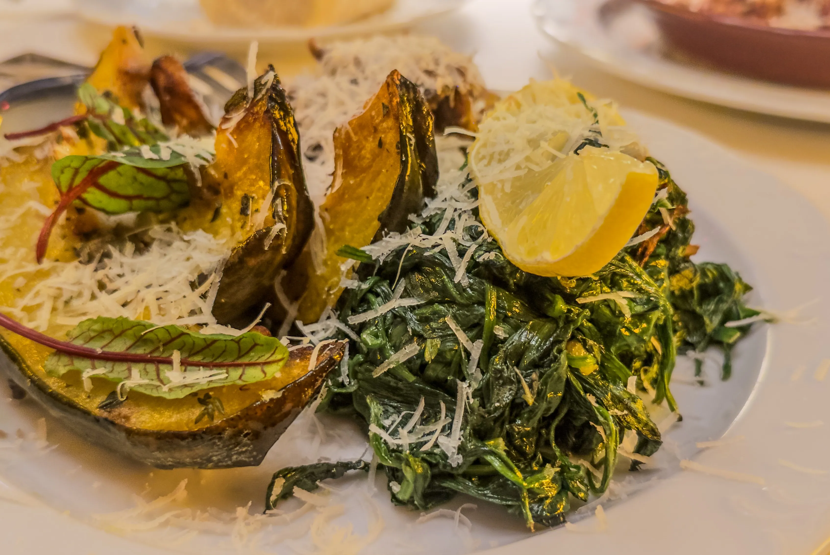 - The antipasto bar, which is a feast for the eyes upon entry, allows guests to select vegetables in portions of either three or five ($26; $34). A delightful assortment of mushrooms, intricately carved squash, and zesty lemon spinach come together beautifully on the plate.