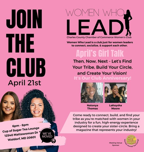 The Charles County Chamber of Commerce Women’s Club invites you to join the WOMEN WHO LEAD event.