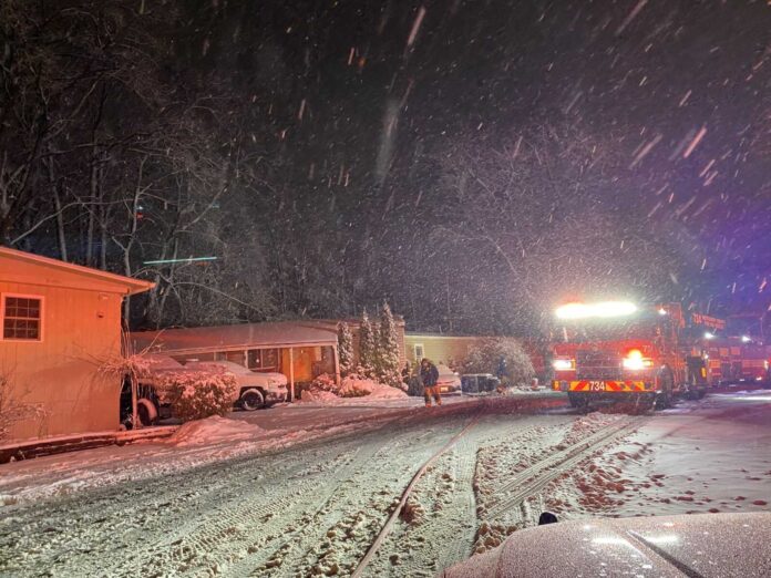 The fire occurred as heavy snow moved through the Germantown area, which made conditions more challenging for both emergency crews and road workers clearing snow-covered streets.