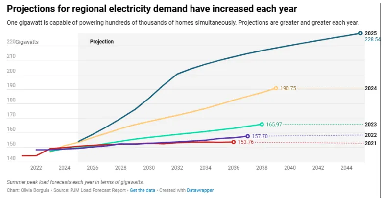Consequently, forecasts indicated that the regional electricity grid’s peak load could increase by 32 gigawatts between 2024 and 2030, enough energy to potentially power around 24 million homes.