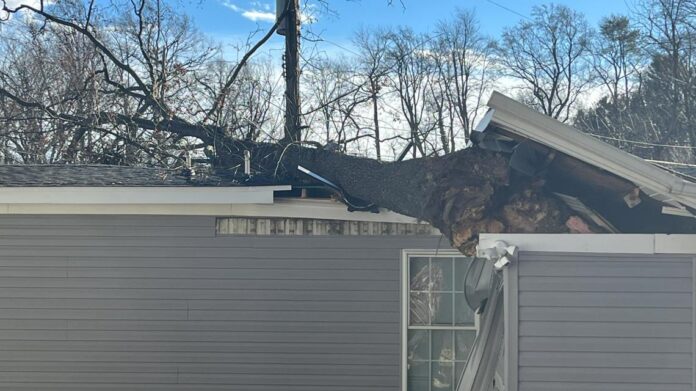 In Germantown, a tree fell onto a trailer home located at the intersection of Rembrant Street and Magnolia Road, near Frederick Road. Pete Piringer, the spokesperson for Montgomery County Fire and Rescue Services, reported that the fallen tree also damaged power lines, resulting in outages in the vicinity.